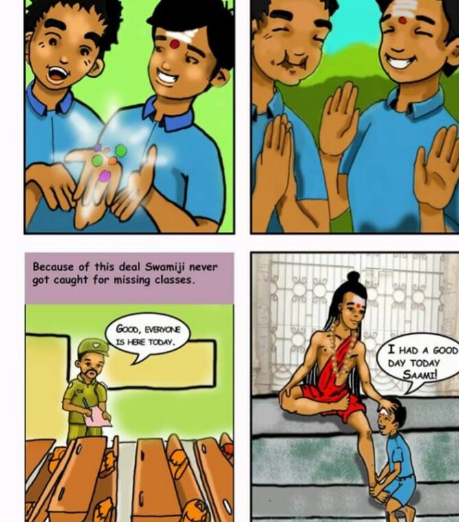 Nithyananda Chitra Katha is a comic book filled with powerful cognitions from the life of SPH Bhagavan sri Nithyananda Paramashivam. This book contains A large number of stories with colorful picture which were told by Swamiji himself!!!
